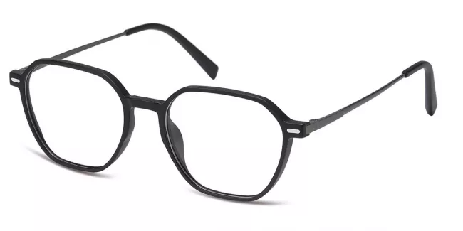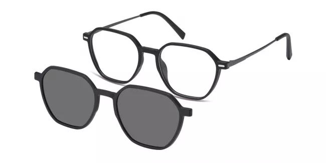 Nelson is a geometric shaped plastic frame in a matt finish with stainless steel arms. The frame comes with a magnetic polarised sunglasses clip on.